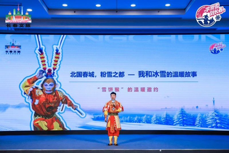 现场达东说念主互动法子飞扬迭起。长春文旅推选官“雪饼猴”空降互动,活泼推介长春冰雪资源;河森-SH环游中国、小马达逛吃、李影Lily、蕾蕾流浪记、硬核肉脸等多位北京文旅达东说念主被授予 “长春冰雪体验官”,他们粉丝总和超千万,将以短视频、直播等面目深度推介长春冰雪;长春市动植物公园西游乐土演员闫东现场演唱了长春市全球艺术馆创作的歌曲《百年生机》,为推介会增添了浓厚的艺术气味。