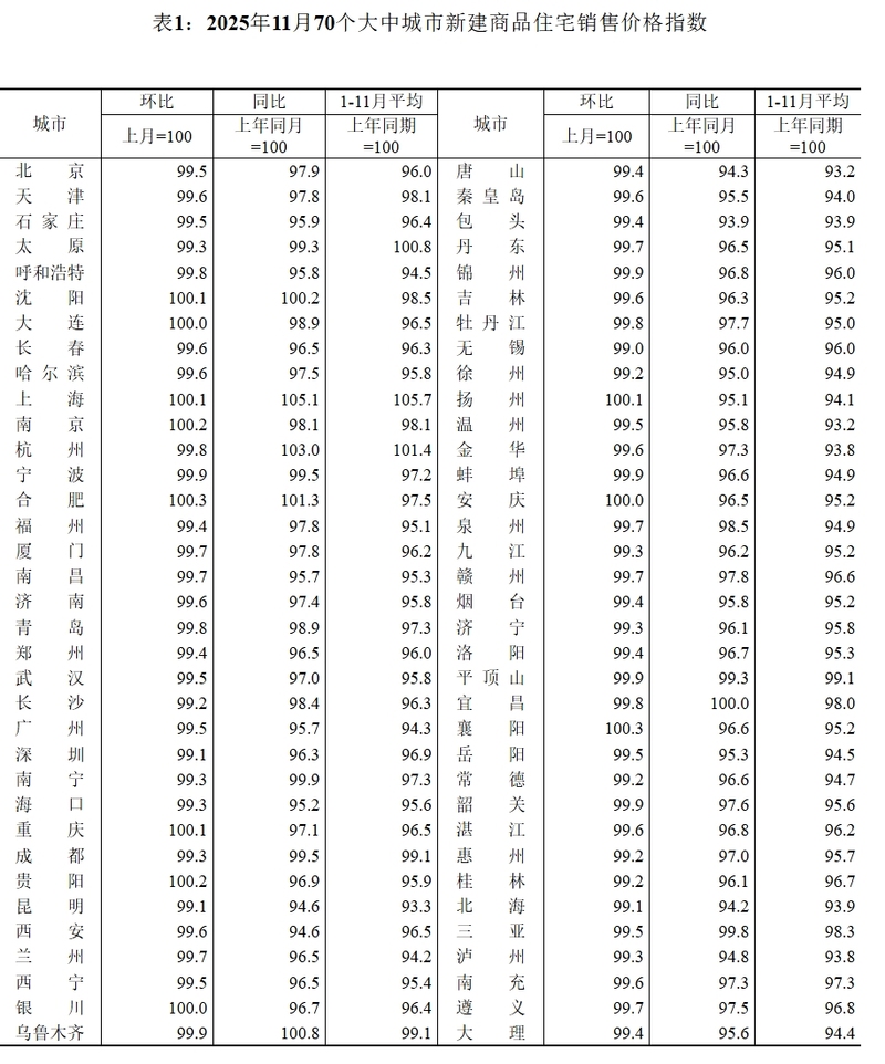 12月15日,国度统计局发布《2025年11月份70个大中城市商品住宅销售价钱变动情况》。对此,国度统计局城市司首席统计师王中华解读暗示:“2025年11月份,70个大中城市商品住宅销售价钱环比总体下降、同比降幅扩大。”