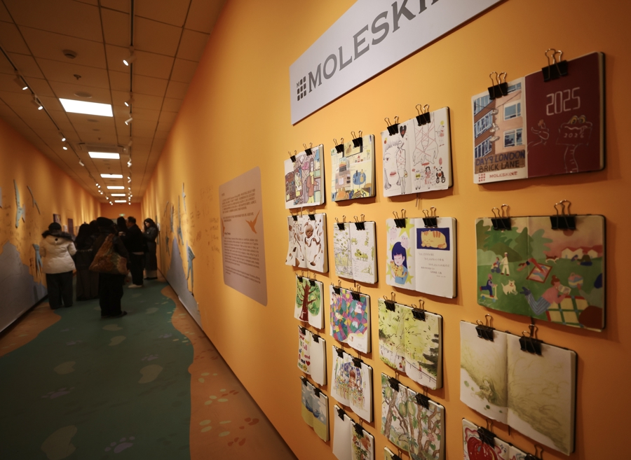 自开幕以来,展览取得粗拙海涵。现场独特设备了一册巨型札记本,供不雅众立足、阅读与纪录。此前的共创庆典上,参与者们在这本札记本上留住即时的感受与念念考,让“书写确乎发生”,也使展览的内涵在互动中不停延展。