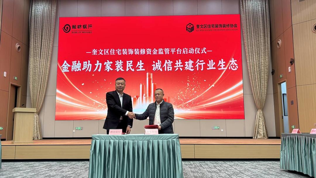 庆典现场,潍坊银行与奎文区住宅守密装修协会缔结配合合同,为监管平台的长效运营筑牢配合基础,奎文区住宅守密装修资金监管平台认真上线启用。